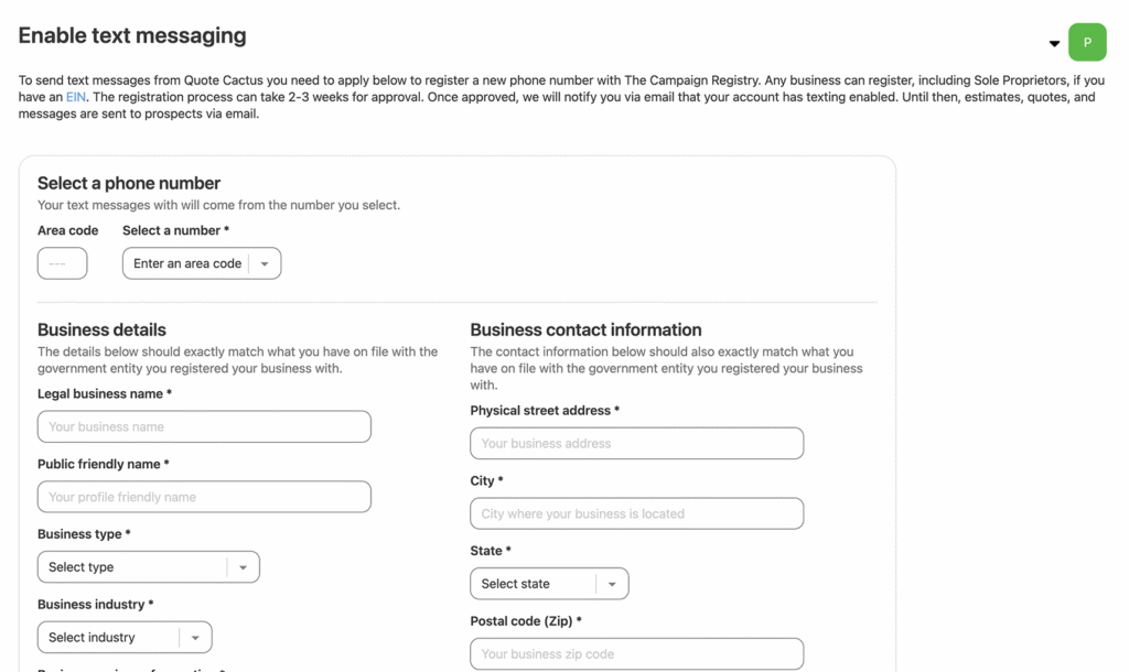 Application Timeline: The registration process typically takes 2-3 weeks for approval. Quote Cactus applies on your behalf; however, the Campaign Registry makes the approval decisions.