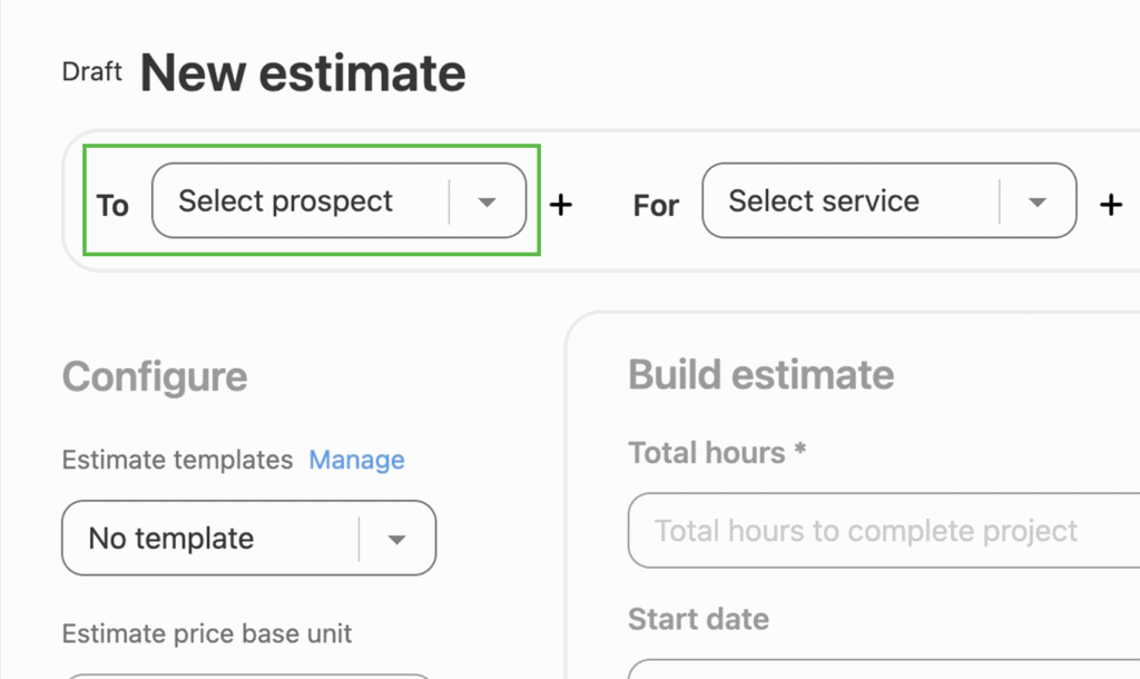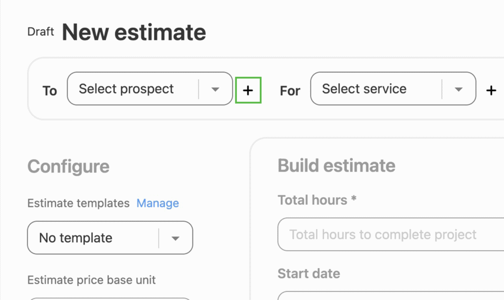 If you need to create an estimate for a prospect who hasn’t been added yet, click the “+” icon to add them. The new prospect will be automatically selected after you complete the addition process.