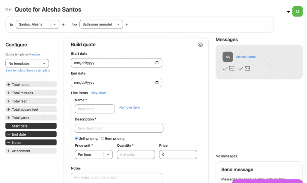 Once you’ve built your estimate or quote, send it directly to your prospect. If you added yourself as a test prospect, send it to yourself so you can experience the entire customer journey firsthand.