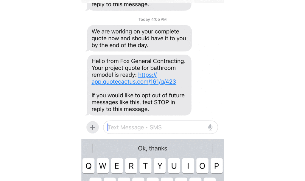 Prospects receive messages in their email or, if you have texting enabled on your account, on their phone from your Quote Cactus phone number. This dual-delivery approach ensures prospects receive your communications through their preferred channel.