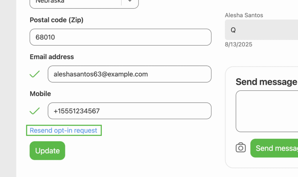 You can resend the opt-in request at any time if a prospect needs to complete the process again or if their initial opt-in email was missed.