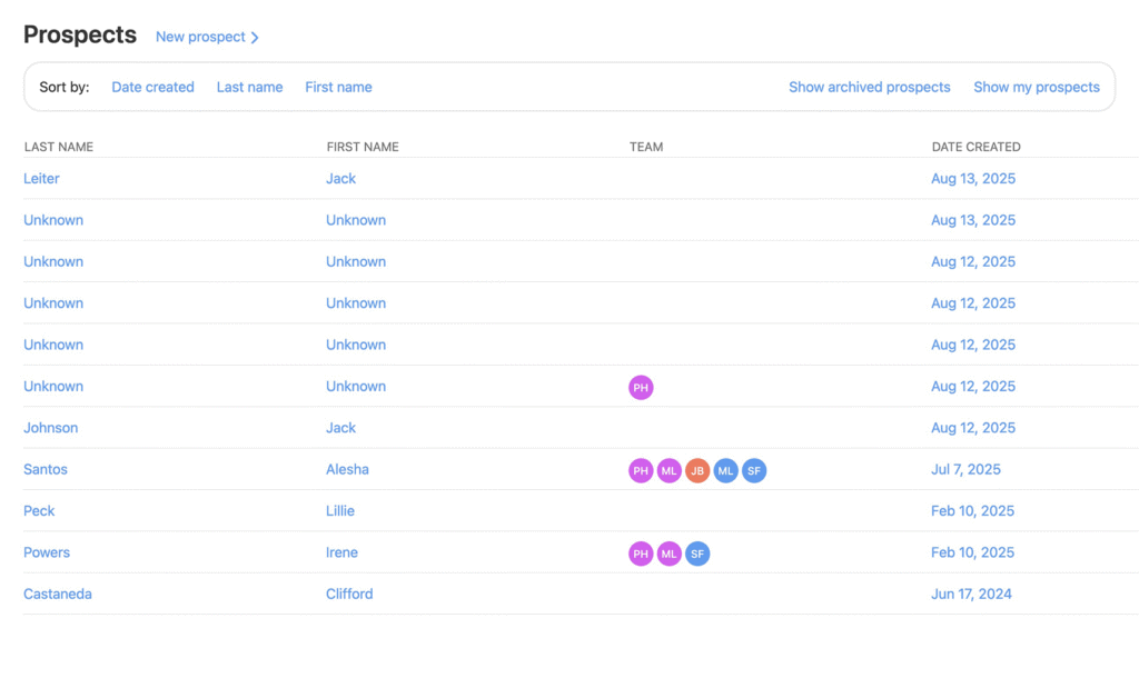 Tip: Use the filtering options to focus on specific prospect groups, especially in teams where multiple members manage different prospect segments.