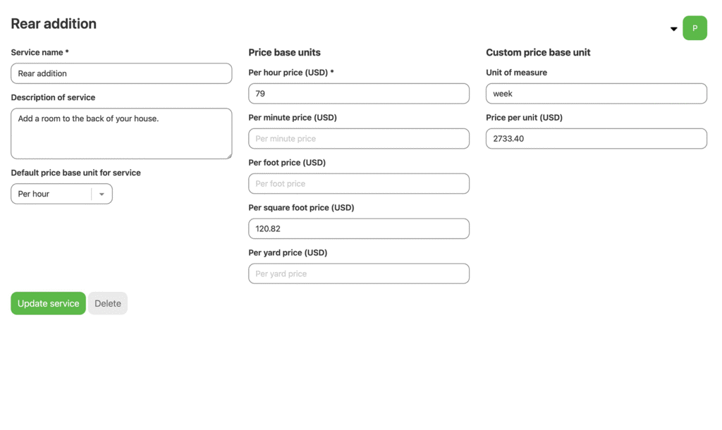 Tip: Consider which pricing units best match your service delivery model. You can configure multiple pricing options for the same service to provide flexibility during quote creation.