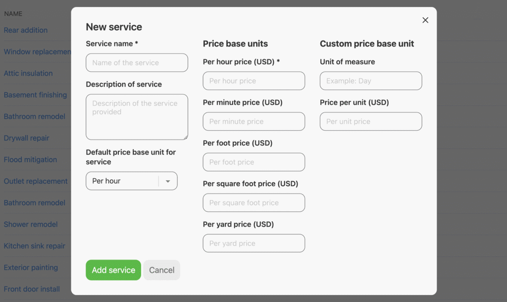 Each service can be attached to requests, estimates, and quotes, providing consistency across your sales process.